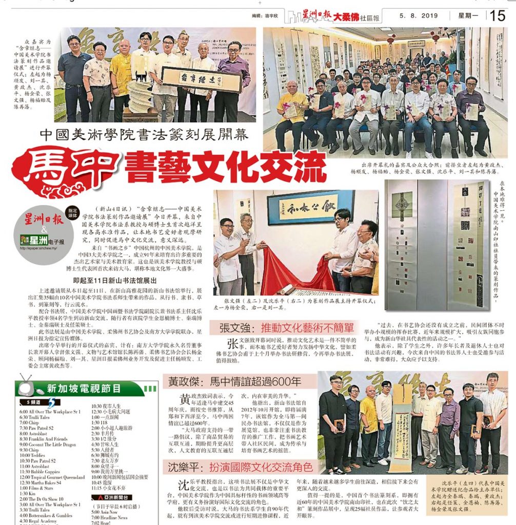 You are here: Home › 活动 › 中国美术学院书法篆刻展开幕-马中书艺文化交流 ← 书法篆刻展8月4起邀赏墨 新山书法馆18日推介新书-沈慕羽日记研究生活篇 → 中国美术学院书法篆刻展开幕-马中书艺文化交流 星洲日报剪报