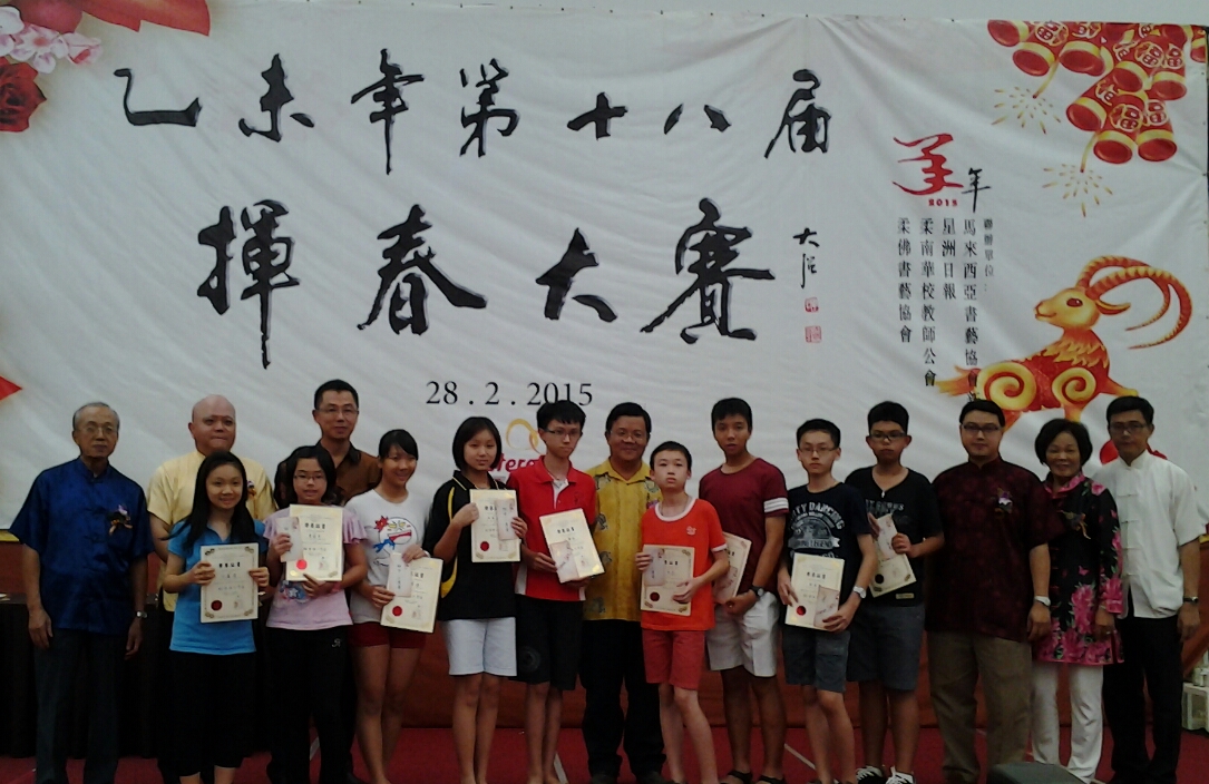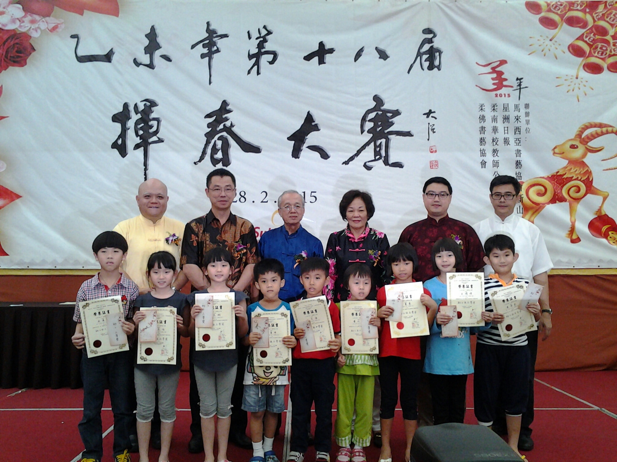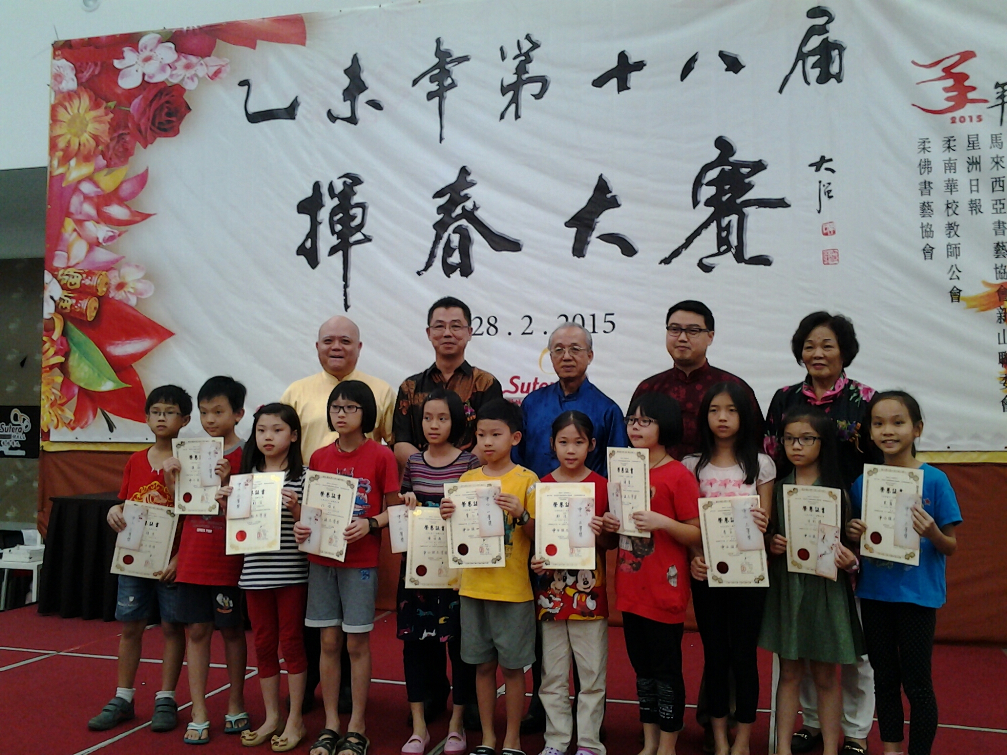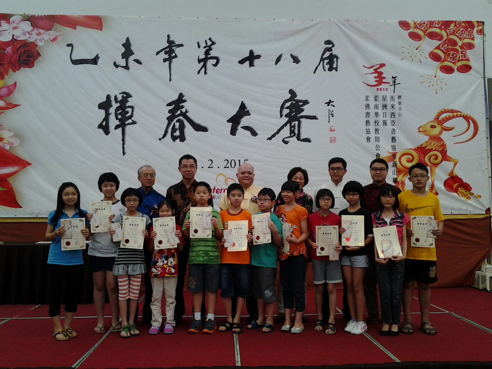 You are here: Home › 活动 › 乙未年第十八届挥春大赛颁奖仪式 ← 书艺贺岁 乙未年第十八届挥春比赛获奖名单 → 乙未年第十八届挥春大赛颁奖仪式 各个组别的颁奖留影 精神奖组别得奖者 友族组得奖者 公开组得奖者 初中组得奖者 高小组得奖者 中小组得奖者 初小组得奖者 团体奖二等奖 国光二小 团体奖首奖 大学城国中