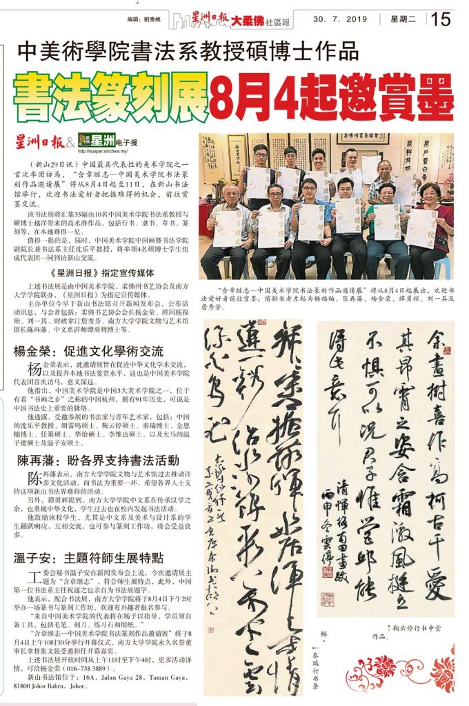 You are here: Home › 活动 › 书法篆刻展8月4起邀赏墨 ← 首届书法高级研修营落幕-马汶新44学员技艺增进 中国美术学院书法篆刻展开幕-马中书艺文化交流 → 书法篆刻展8月4起邀赏墨 星洲日报剪报