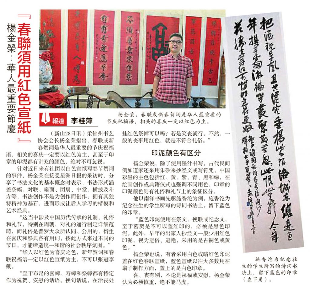 杨金荣:华人最重要节庆-春联须用红色宣纸