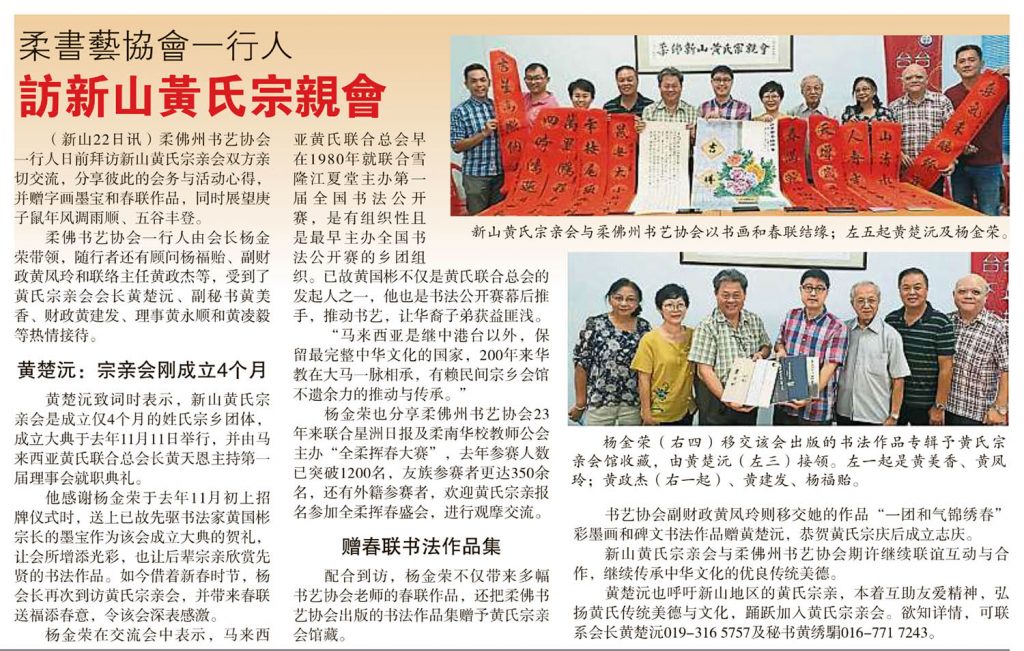 柔书艺协会一行人-访新山黄氏宗亲会